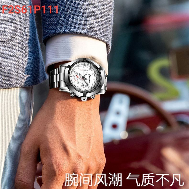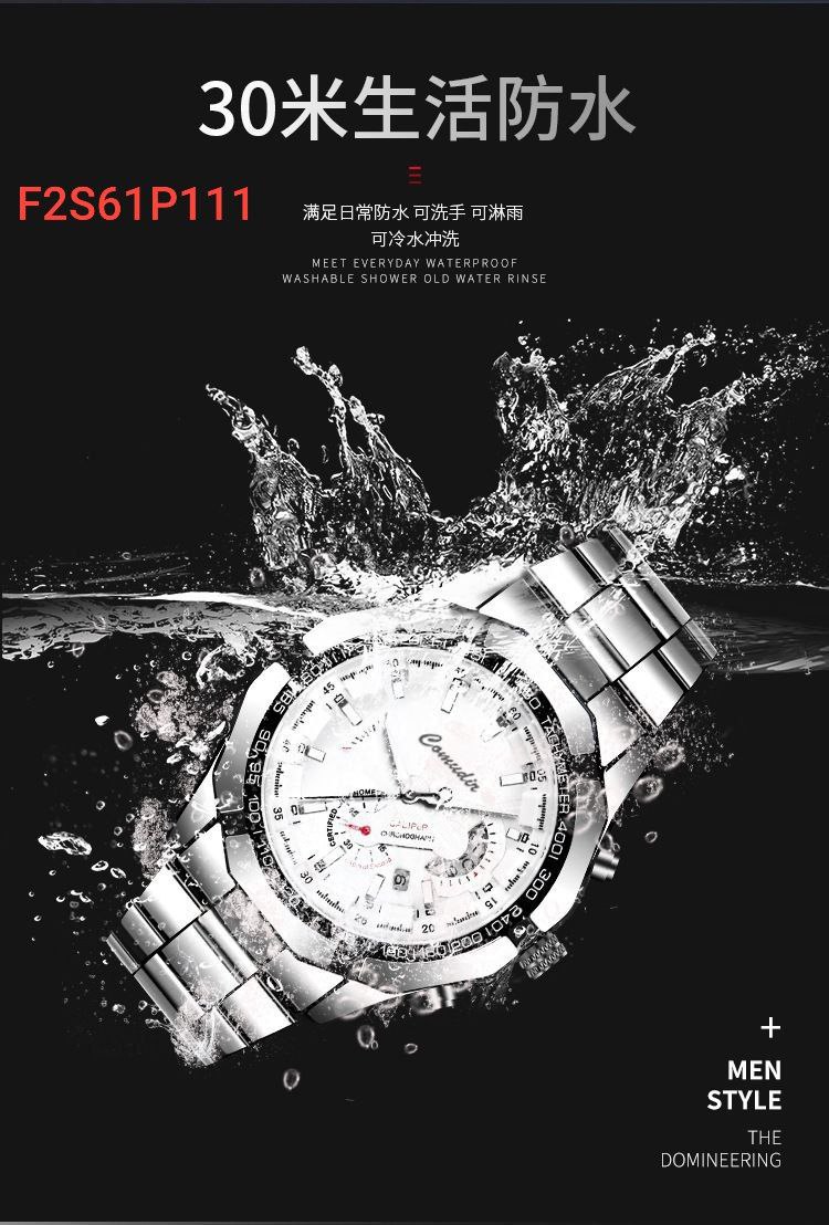 automatic movement watch men's non-mechanical watch hollow calendar waterproof luminous stainless steel strap- W2024