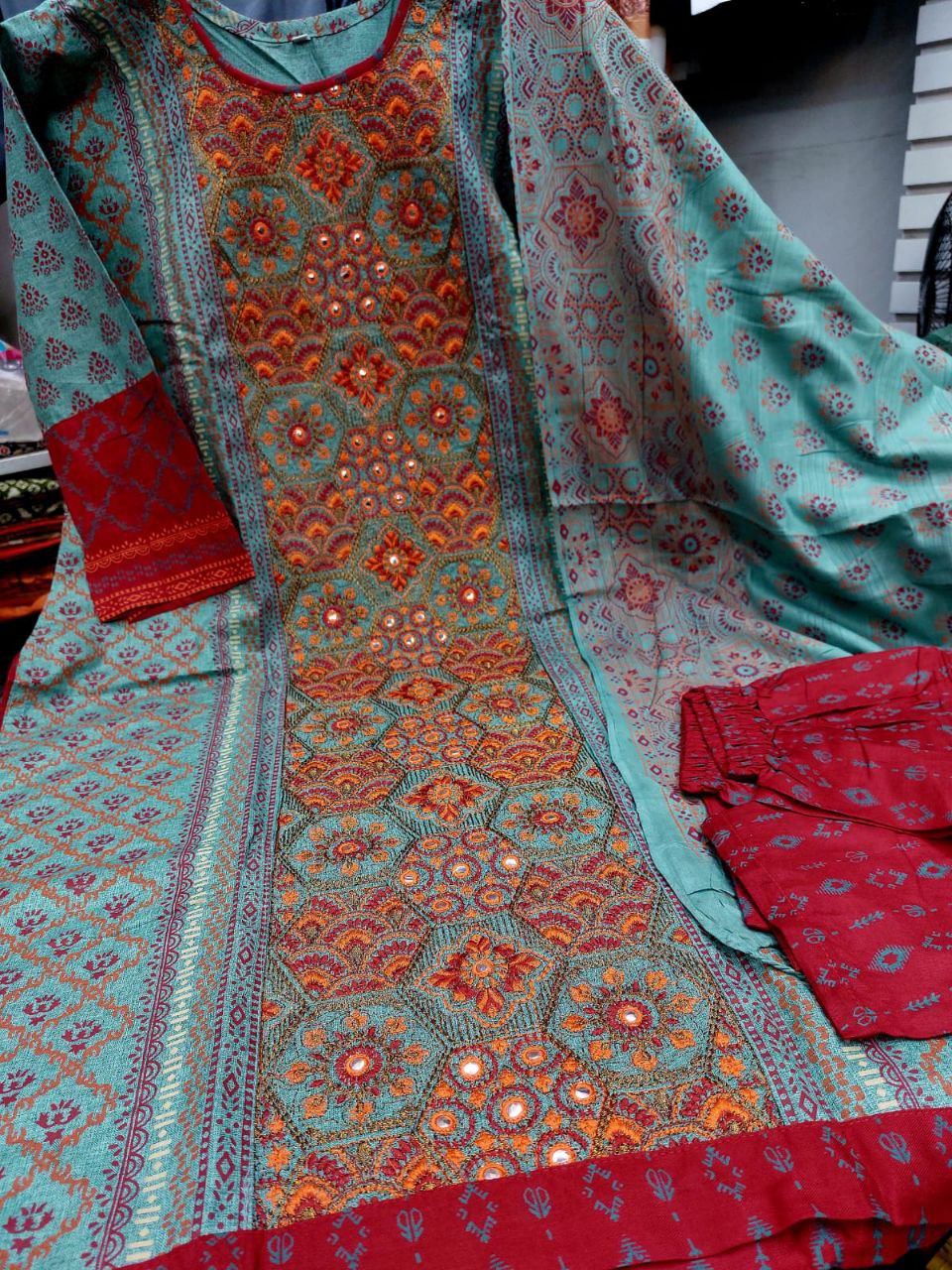 *কামিজ :স্যামসন কটন(সেমি-স্টিচ)হাতের কারচুপির কাজ এবং এম্ব্রডারি কাজ করা।