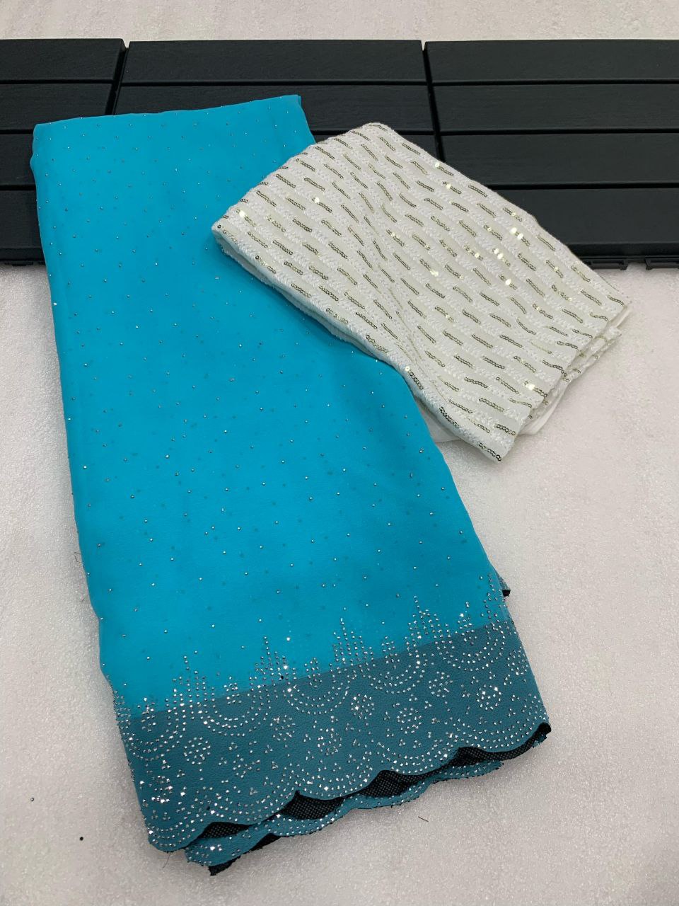*Beautiful designer Party wear saree fabrics Georgette saree with all over heavy beads work along*