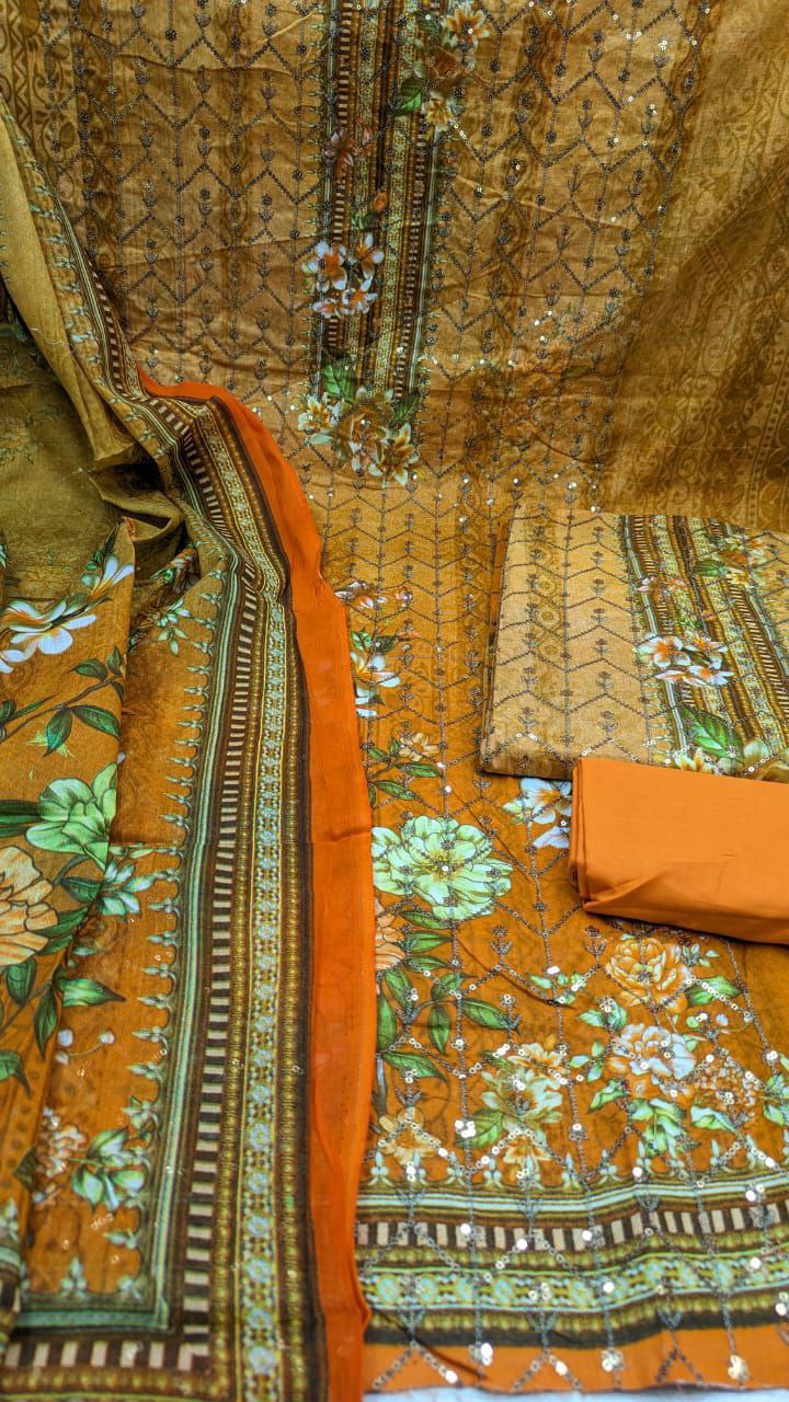*প্রিমিয়াম কোয়ালিটি সুতি কাপড়ের উপর কম্পিউটার এমব্রয়ডারি এবং সিকুয়েন্স কাজ করা থ্রী পিস.