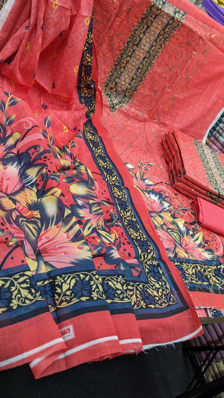 *প্রিমিয়াম কোয়ালিটি সুতি কাপড়ের উপর কম্পিউটার এমব্রয়ডারি এবং সিকুয়েন্স কাজ করা থ্রী পিস.