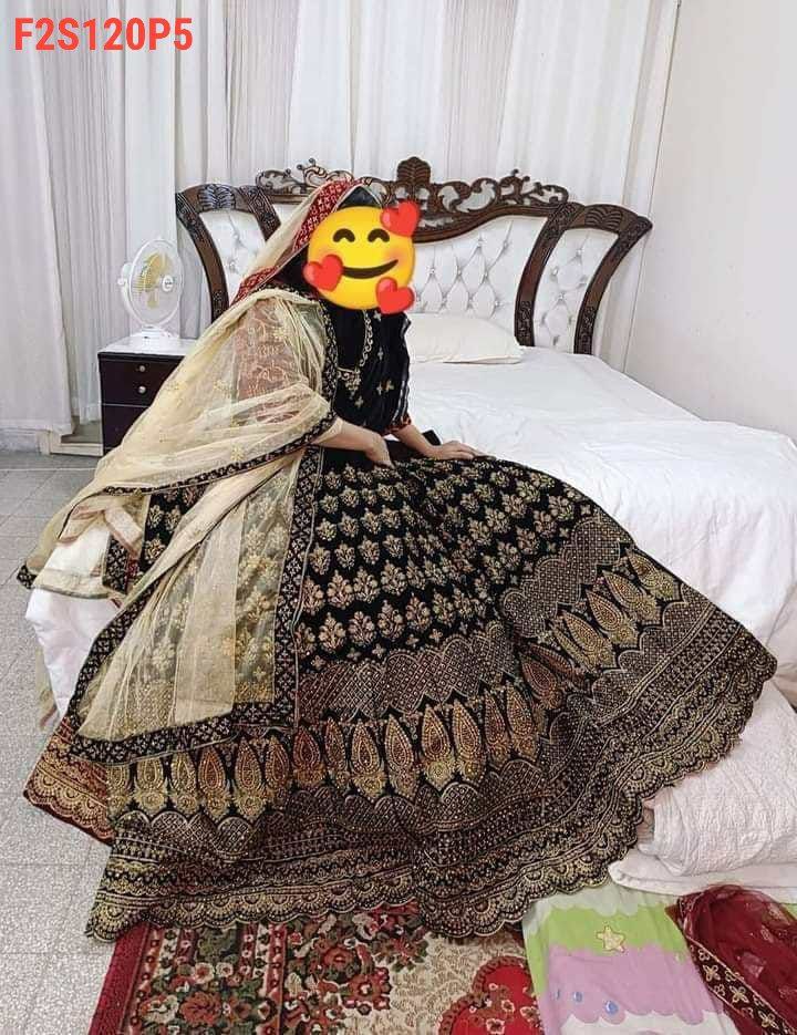 Fabric velvet with kashmiri thread and jhari embroidery with STON Work All Body.