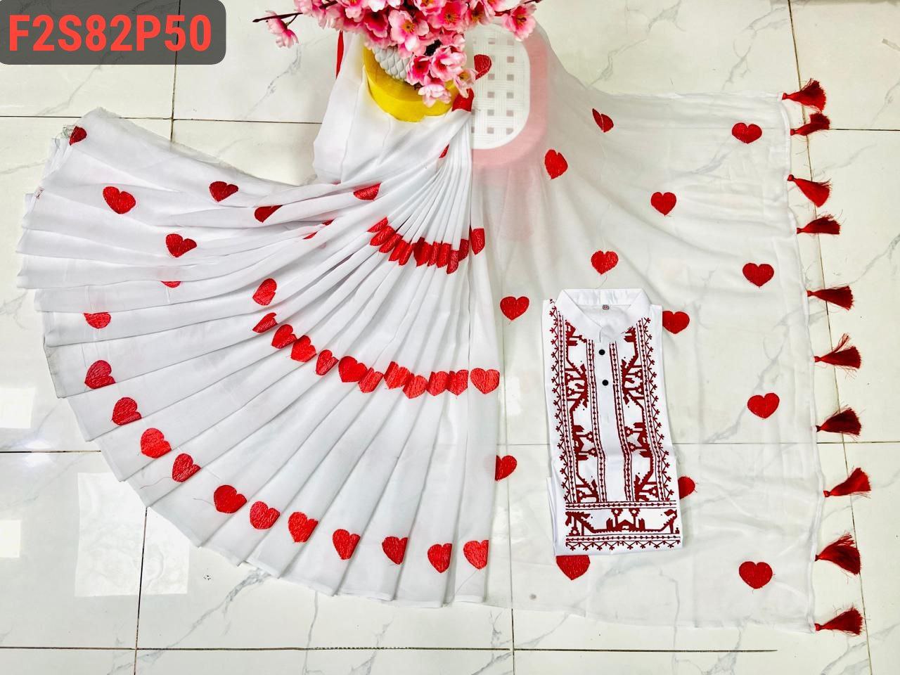 ★জর্জেট সারিতে এমব্রয়ডারি কাজ করা।