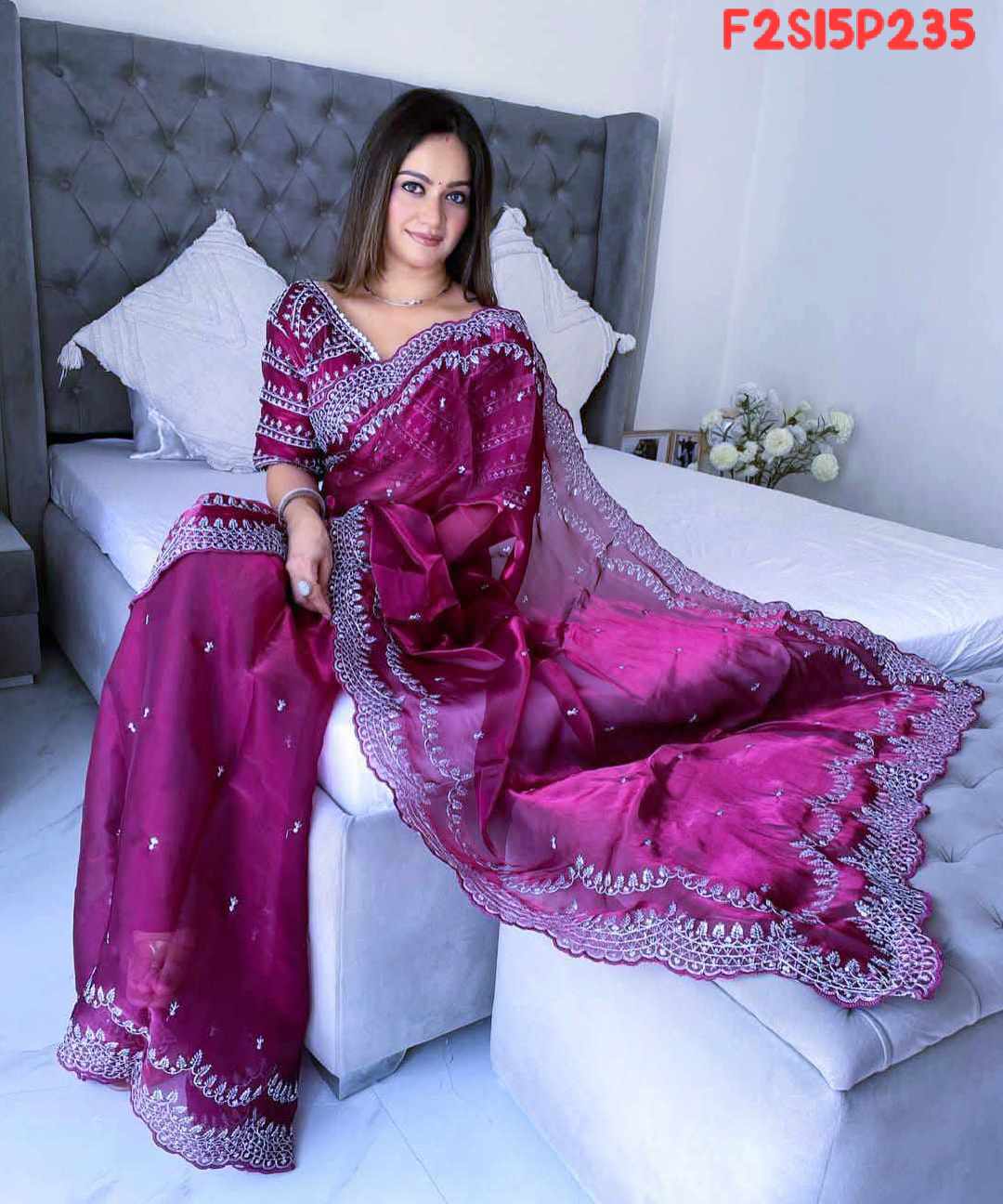 ★Pure soft zimmy choo silk saree with amazing embroidery 3 mm sequence and multi work heavy border bd butti in all over saree with aarco..