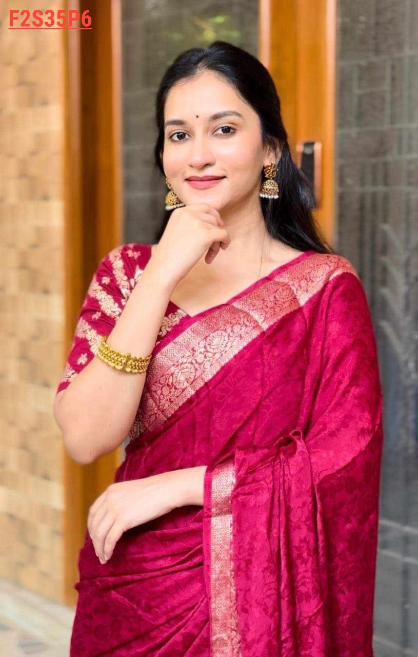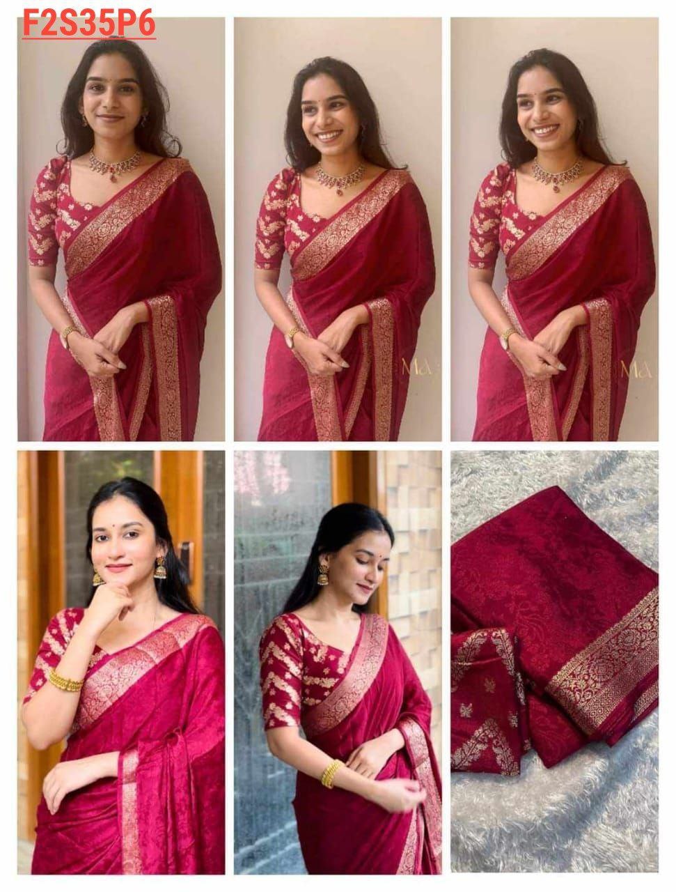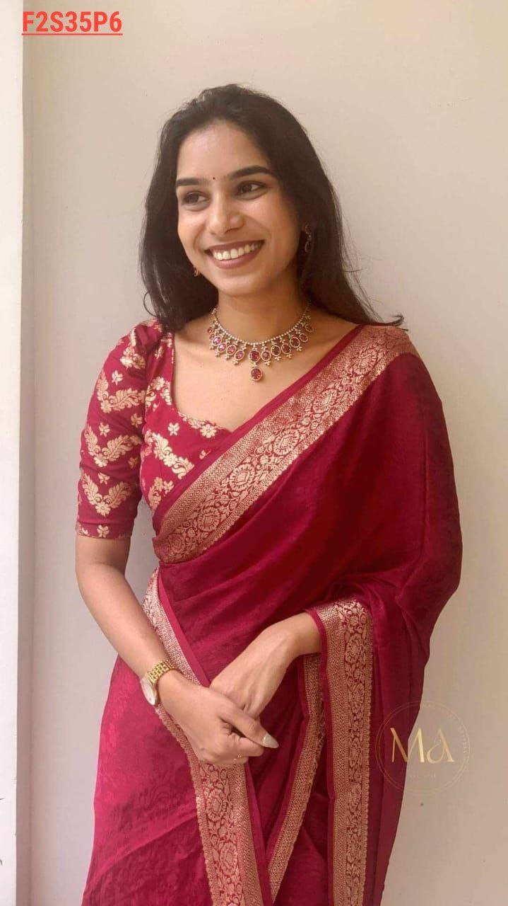 Viscose Chinnon Weaving Pattern Saree's with Dola Banarasi Silk Blouse