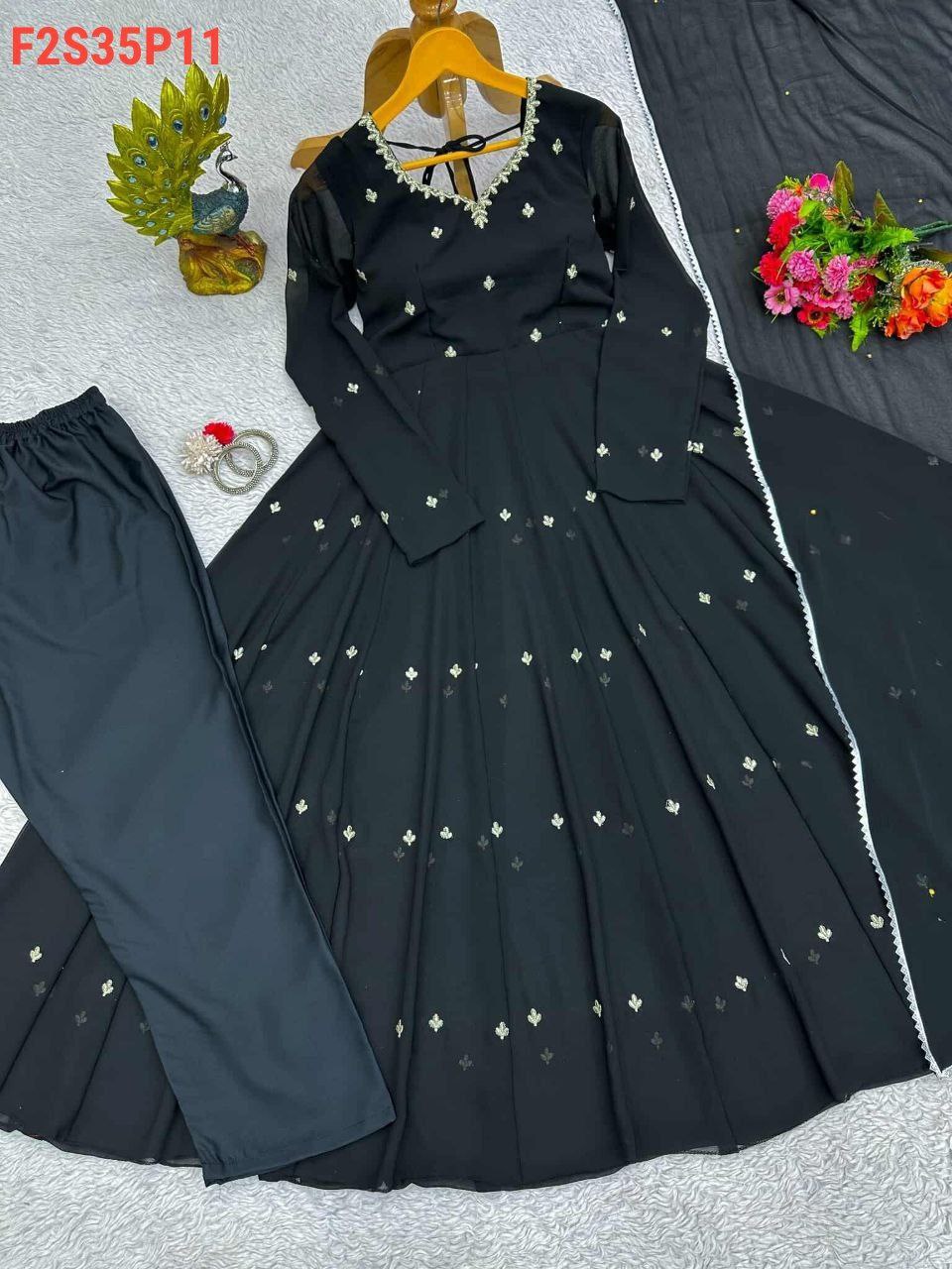 Looking for this same colour beautiful Design Suit on Faux Georgette febric with Inner and Thred Work and Pent on Crep Febric and Dupatta on also Faux Georgette Frbeic With Lace work with Stone work.
