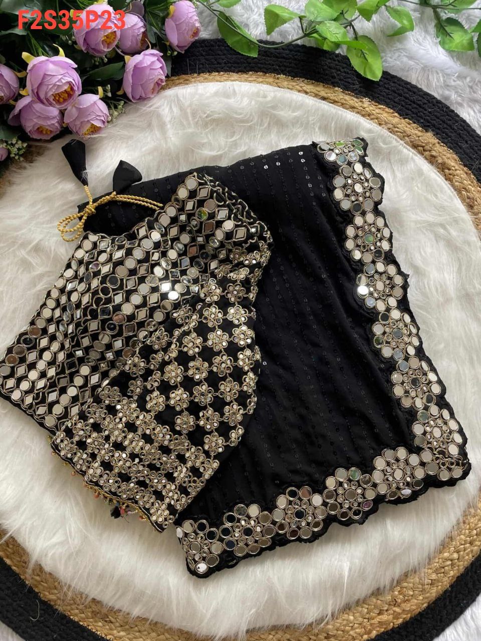 Work :-Embroidered Body with 5mm Sequins with Embroidered Lace Border of Zari Dori work and Real Mirror Work