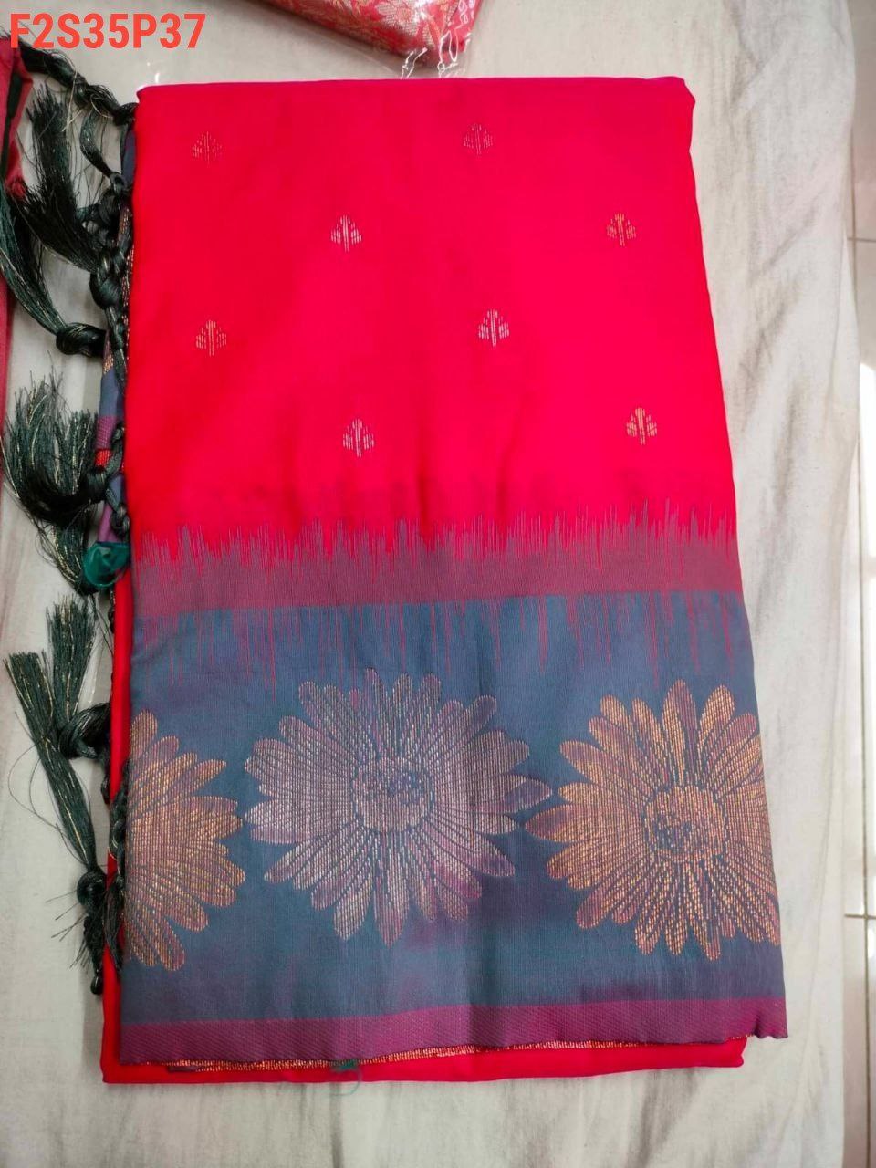 Soft silk saree with tiny motis, contrast border and woven pallu