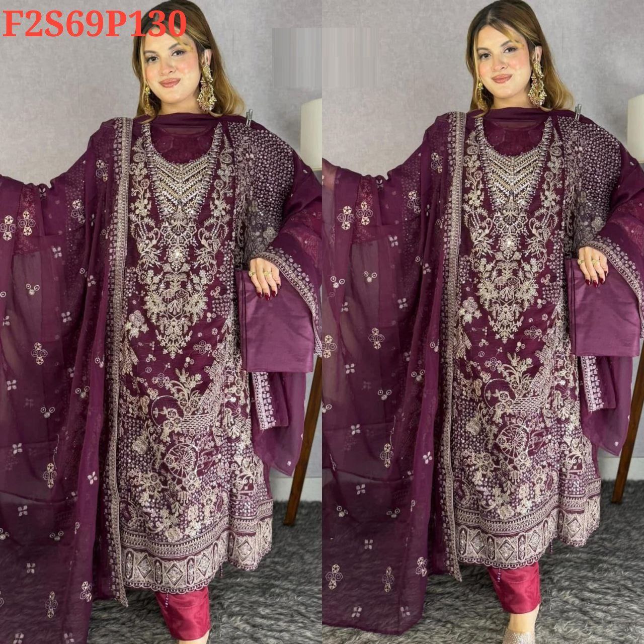 Sleeve: White gold shiffon & Embroidery With Sequence Work