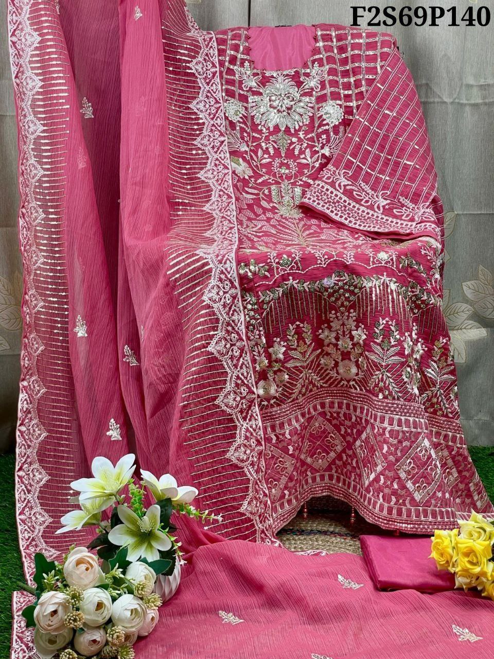Sleeve: White gold shiffon & Embroidery With Sequence Work