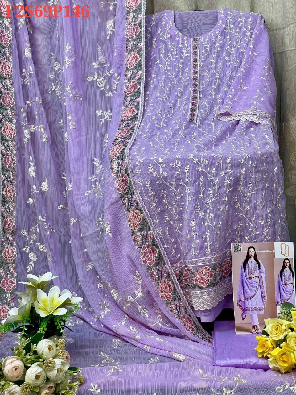 Sleeve: White gold shiffon & Embroidery With Sequence Work