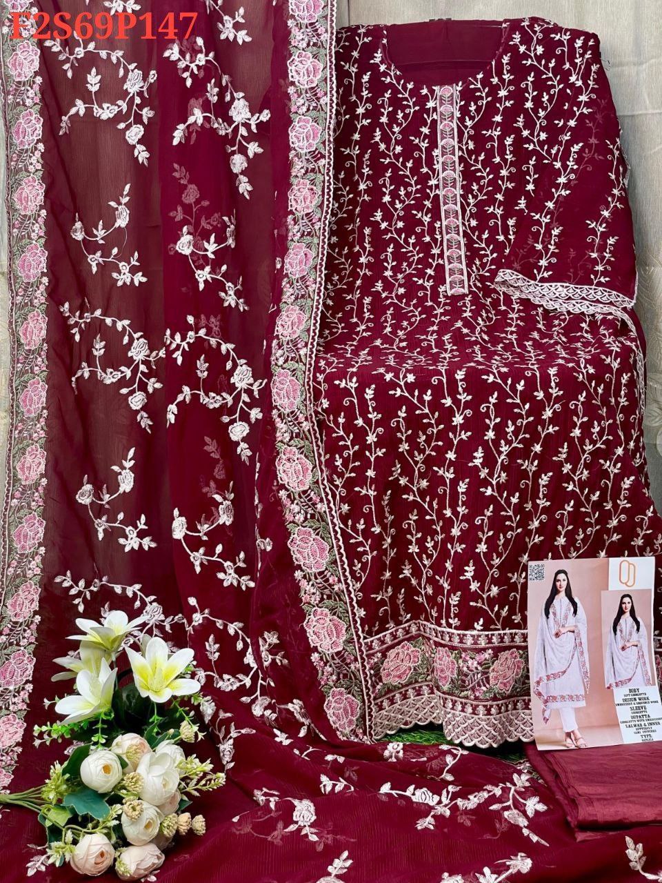 Sleeve: White gold shiffon & Embroidery With Sequence Work