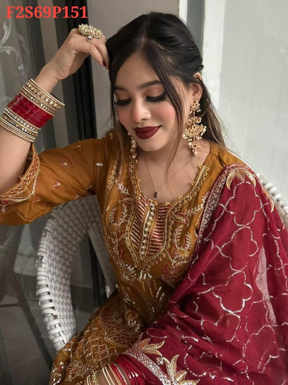 Sleeve: White gold shiffon & Embroidery With Sequence Work