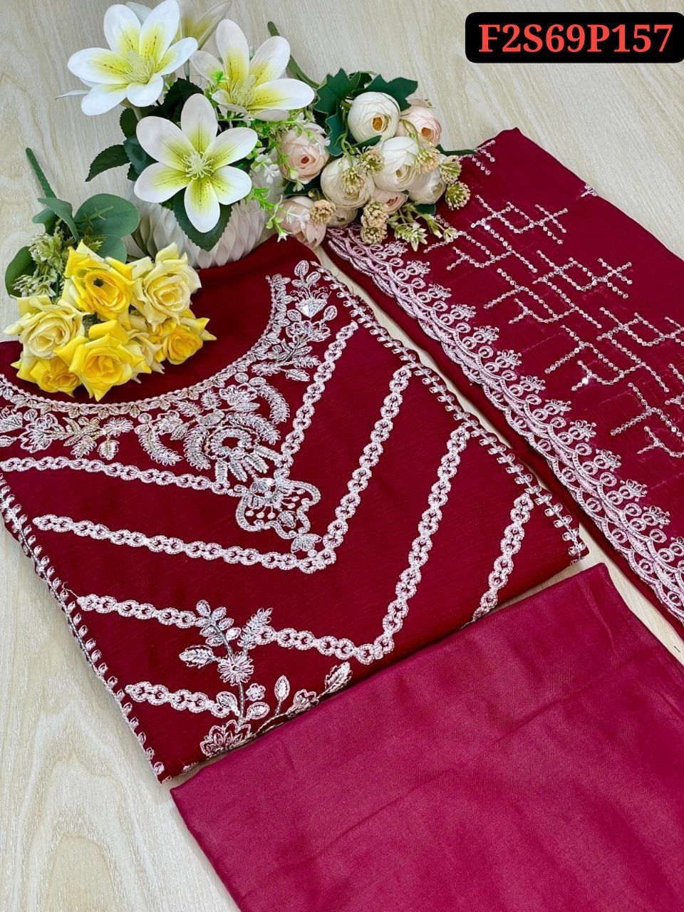 Sleeve: White gold shiffon & Embroidery With Sequence Work