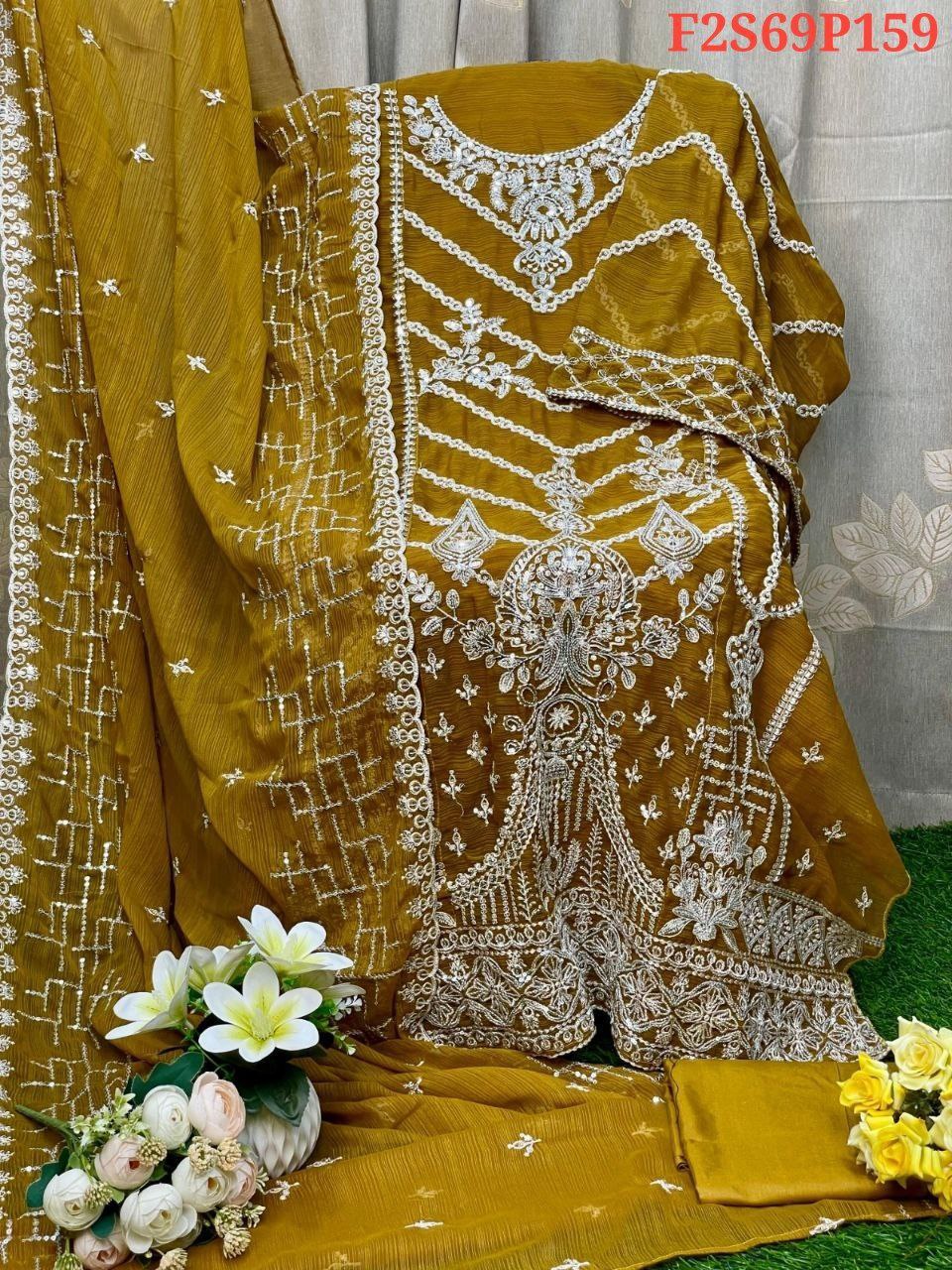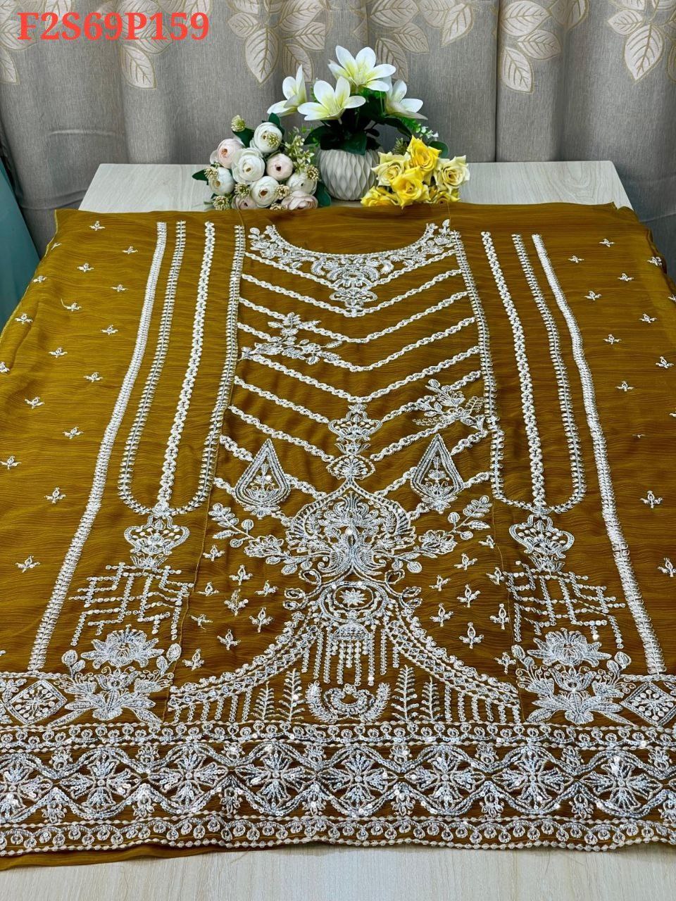 Sleeve: White gold shiffon & Embroidery With Sequence Work