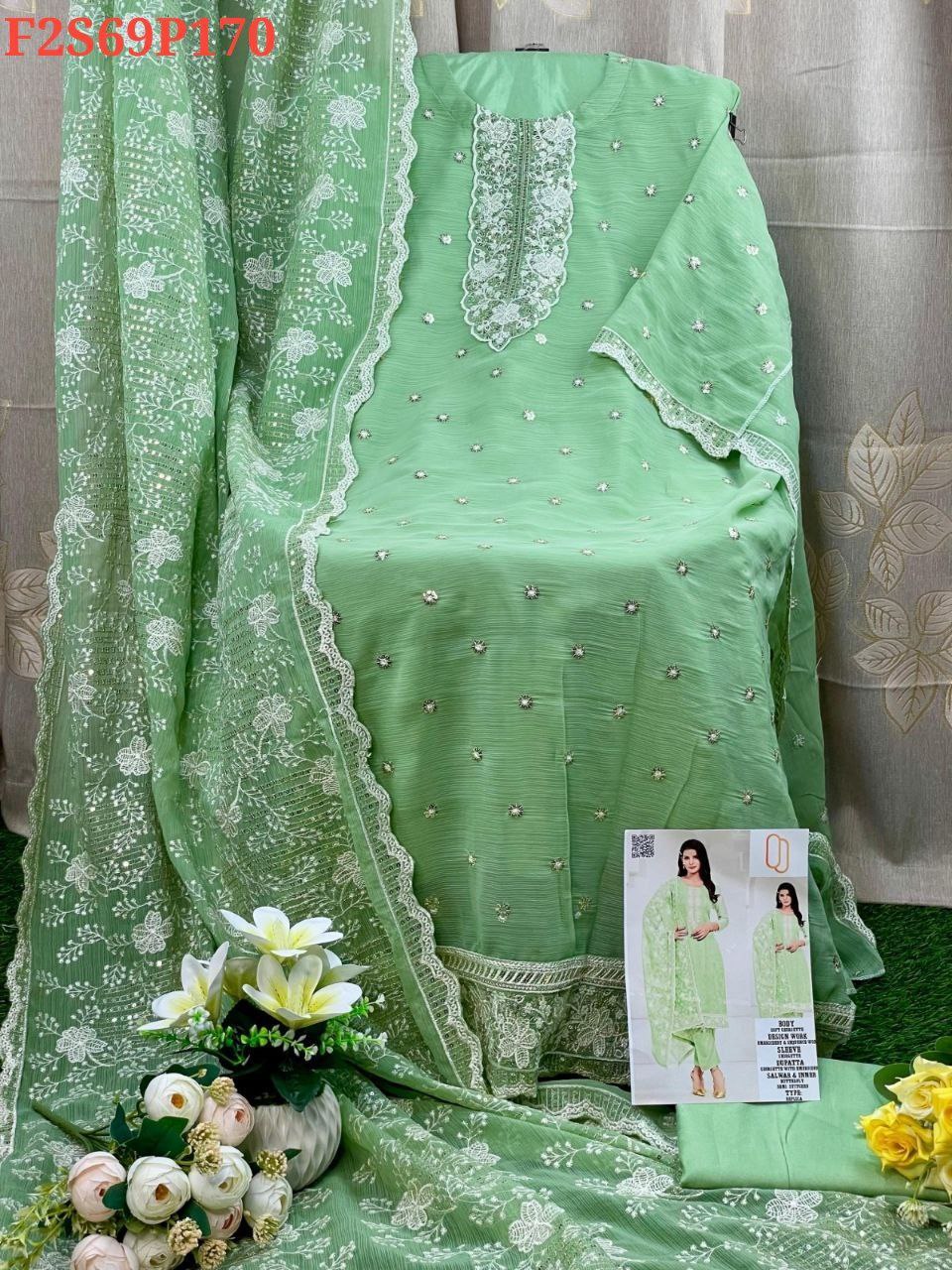 Sleeve: White gold shiffon & Embroidery With Sequence Work