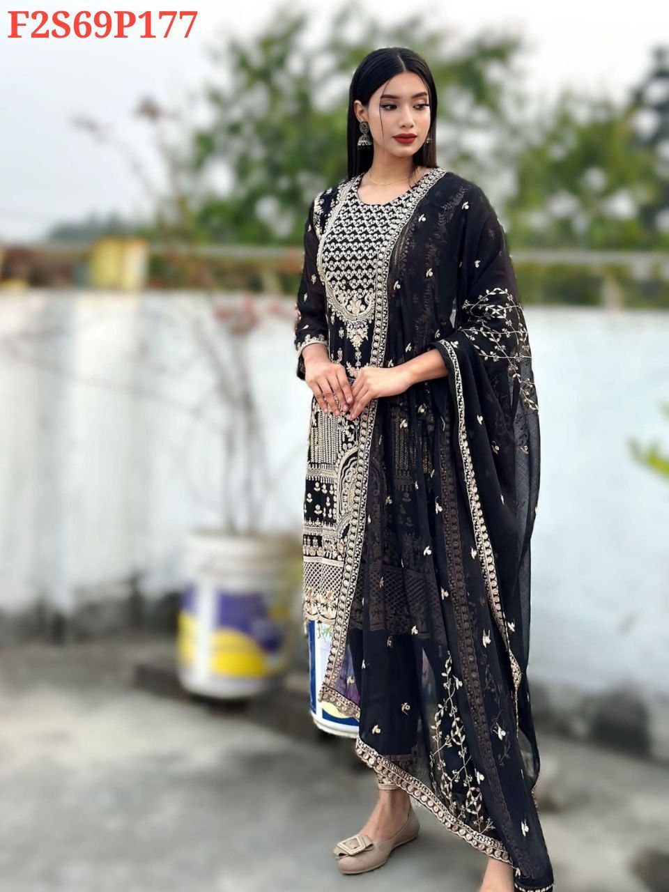 Sleeve: White gold shiffon & Embroidery With Sequence Work