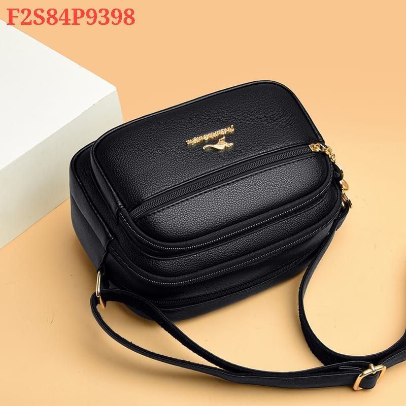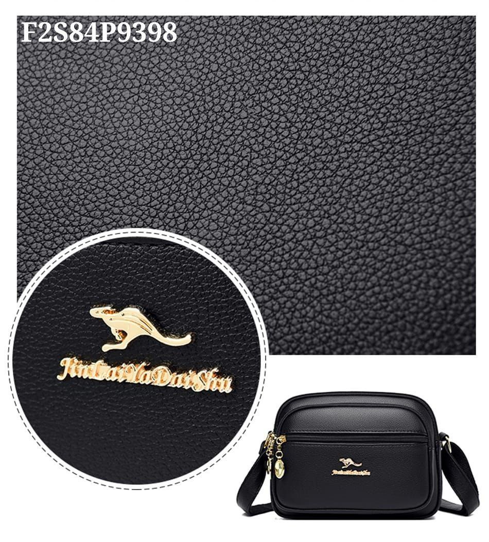Stylish Women's Crossbody Bag with Golden-Tone Hardware, Kangaroo Logo & Multiple Compartments - Black, Casual Everyday Bag | Functional Fashion | Zippered Compartments