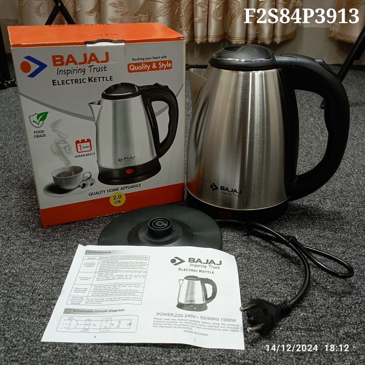 Specification: Title:Bajaj Electric Kettle 2-LiterBrand:BajajColourBlackCapacity2 LtrCountry of OriginIndiaFeaturesEasy to use.