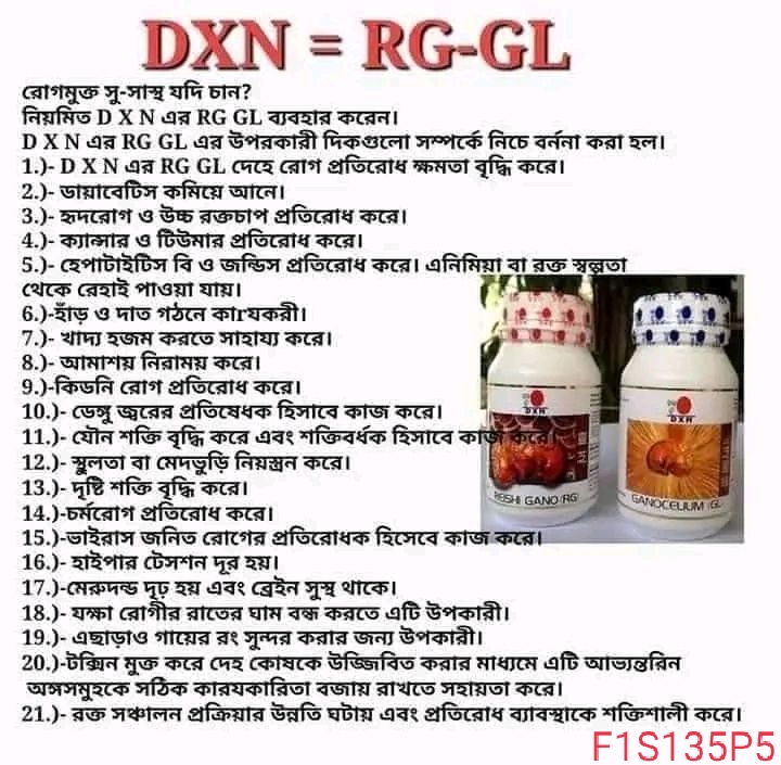 রোগমুক্ত সু-সাস্থ যদি চান?তাহলে নিয়মিত DXN এর RG GL ব্যবহার করুন।
