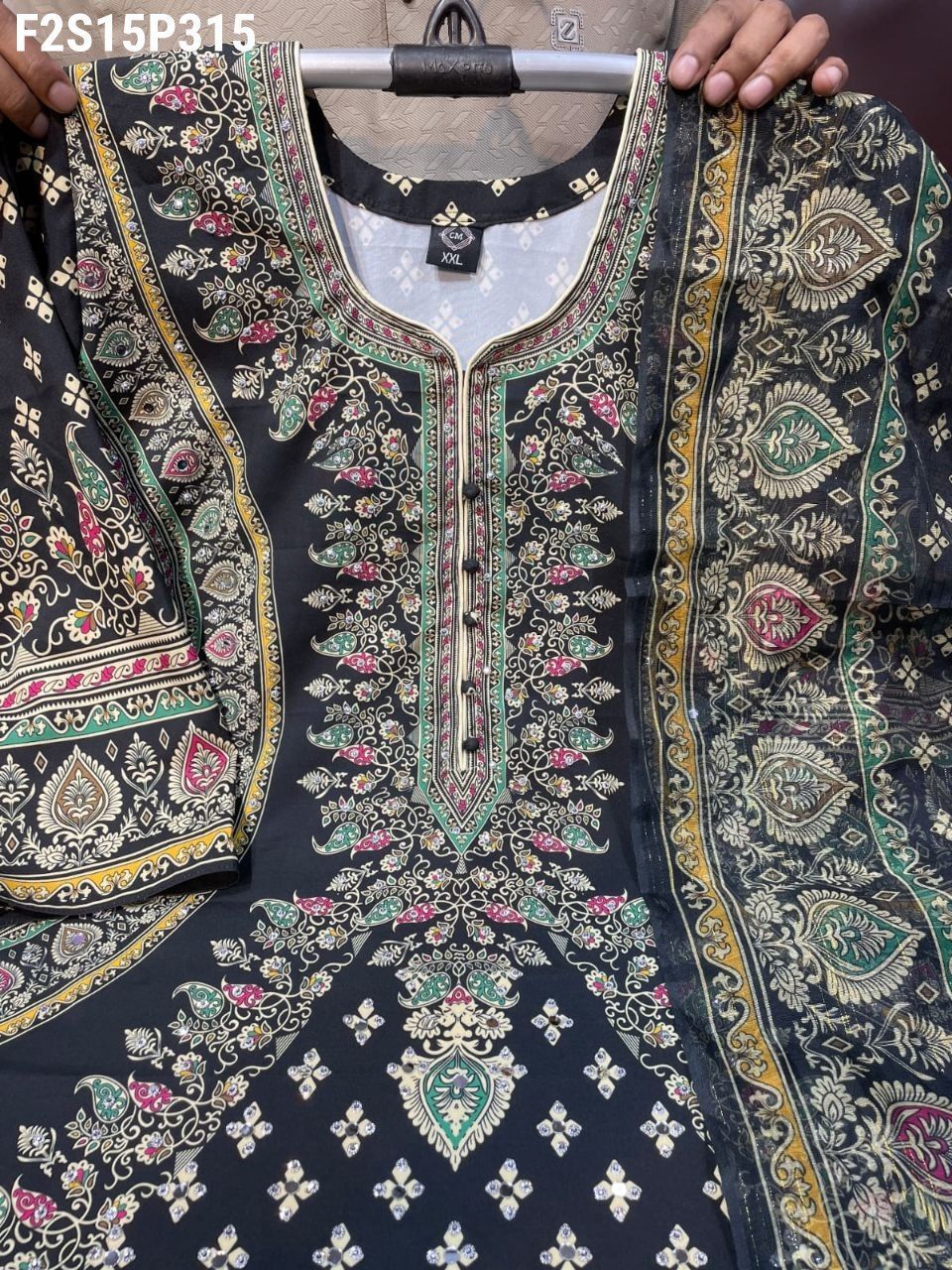 Digital print 3pices ডেলিভারি চার্জ ফ্রি! ডেলিভারি চার্জ ফ্রি!! ডেলিভারি চার্জ ফ্রি!!! ★ মাত্র ২ টি প্রোডাক্ট একসাথে অর্ডার করলেই সারা বাংলাদেশে ক্যাশ অন ডেলিভারি(পণ্য হাতে পেয়ে টাকা পরিশোধ) সিস্টেমে হোম ডেলিভারি চার্জ সম্পুর্ন ফ্রী!!! Digital print 3pices Available Size : M=(36-38) L =(40-42)XXL(44-46) Kamiz- micro stitched with glass and ston work Orna : kotasilk Salower: micro stitched Store Code=15 Product Code=F2S15P315 Product Id=0-D-5-P-8 Customer Price=1250 tk Point=25 Member Price=1010 tk Point=5