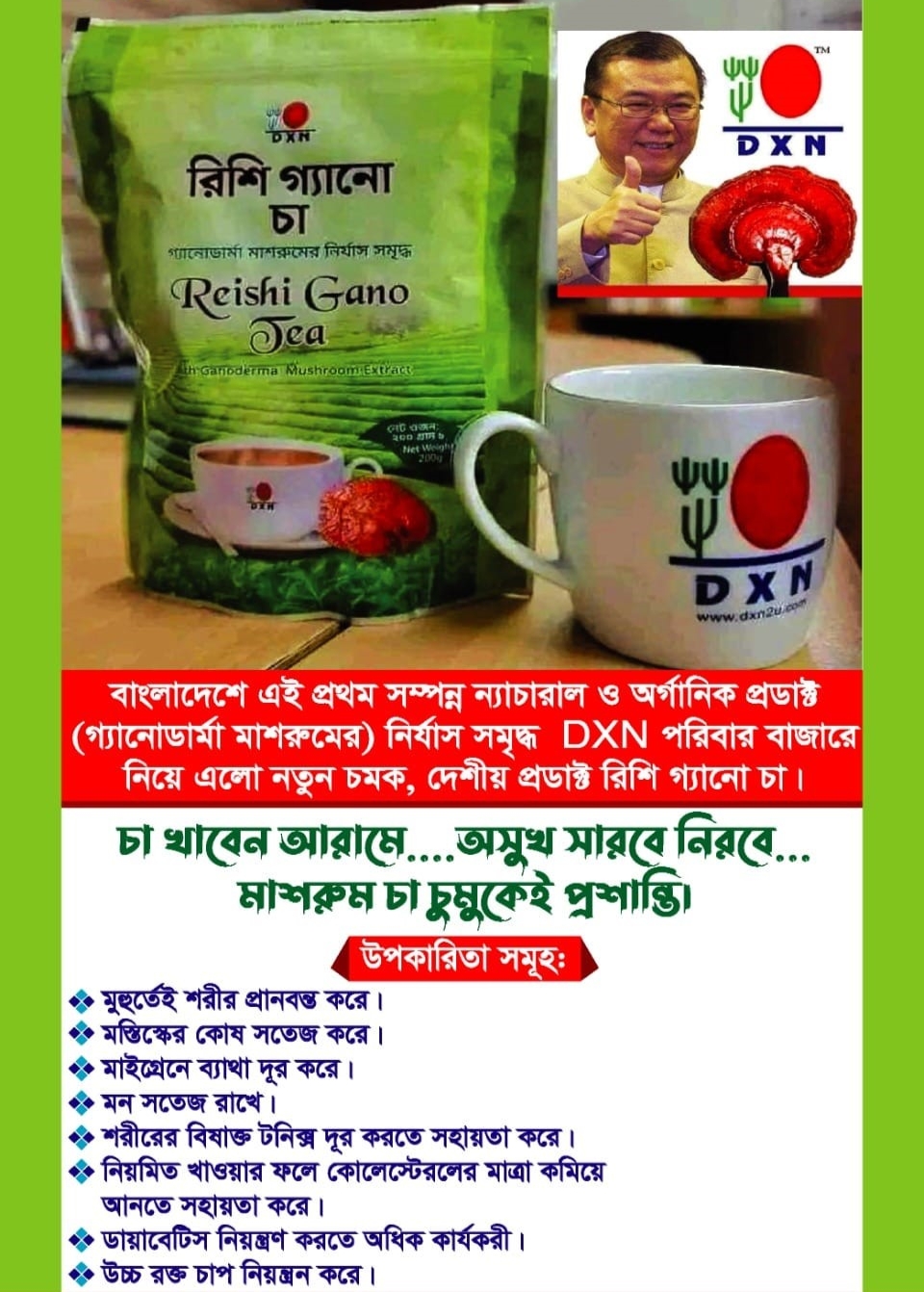 Dxn Reishi Gano Tea Store Code=135 Product Code=F2S135P13 Product Id=0-D-2-P-2 Customer Price=455 tk Point=12 Member Price=370 tk Point=5