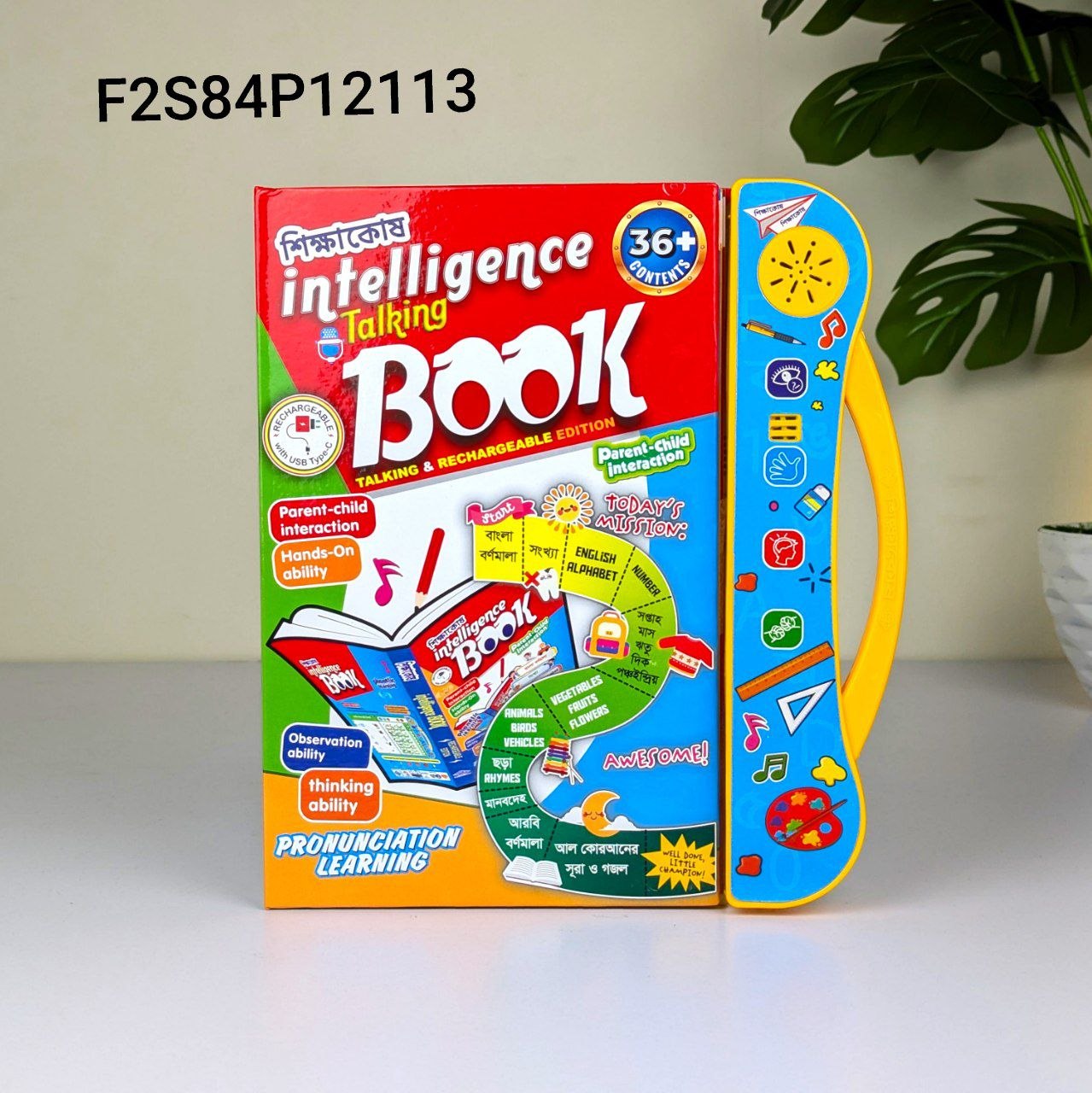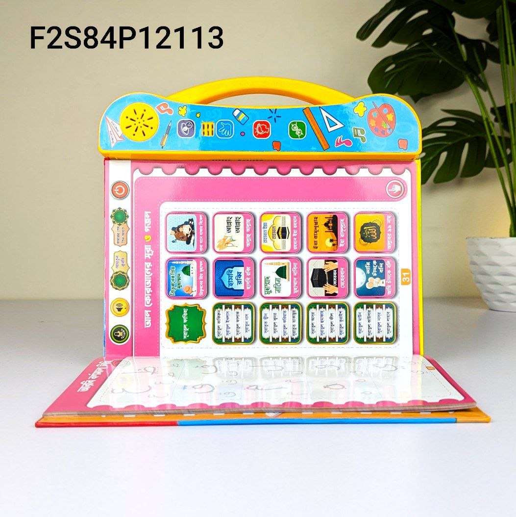 Intelligence Talking Book For Kids ডেলিভারি চার্জ ফ্রি! ডেলিভারি চার্জ ফ্রি!! ডেলিভারি চার্জ ফ্রি!!! ★ মাত্র ২ টি প্রোডাক্ট একসাথে অর্ডার করলেই সারা বাংলাদেশে ক্যাশ অন ডেলিভারি(পণ্য হাতে পেয়ে টাকা পরিশোধ) সিস্টেমে হোম ডেলিভারি চার্জ সম্পুর্ন ফ্রী!!! Intelligence Talking Book For Kids প্রধান বৈশিষ্ট্যসমূহ: বহু-ভাষিক শিক্ষা : সাধারণত বাংলা, ইংরেজি ও আরবি বর্ণমালা এবং সংখ্যা শেখার সুযোগ আছে । ৩৬+ বিষয়: বইটিতে বর্ণমালা, সংখ্যা, ফল, সবজি, প্রাণী, যানবাহন, মানবদেহের অঙ্গপ্রত্যঙ্গ, ইসলামিক সূরা ও গজল, ছড়া/গান সহ ৩৬টিরও বেশি ভিন্ন ভিন্ন অধ্যায় বা টপিকস অন্তর্ভুক্ত আছে। ইন্টারেক্টিভ টাচ সিস্টেম: বইয়ের কোনো ছবি বা লেখাতে চাপ দিলে সেটি স্পষ্ট শব্দে উচ্চারণ করে, যা শিশুদের উচ্চারণ এবং শব্দভাণ্ডার বাড়াতে সাহায্য করে। রাইটিং বোর্ড : এর সাথে একটি মুছে ফেলা যায় এমন রাইটিং বোর্ড বা গ্রাফিতি বোর্ড আছে, যেখানে শিশুরা আঁকাআঁকি ও লেখালেখির অনুশীলন করতে পারে।চ রিচার্জেবল: রিচার্জেবল সুবিধা আছে, যা ব্যাটারি পরিবর্তনের ঝামেলা কমায়। সুবিধাঃ সহজ ও মজাদার শিক্ষা: এটি শেখাকে খেলার মতো মজার করে তোলে এবং শিশুদের মনোযোগ ধরে রাখতে সাহায্য করে। উচ্চারণ অনুশীলন: সঠিক উচ্চারণ শুনতে পাওয়ায় শিশুদের ভাষার দক্ষতা বৃদ্ধি পায়। মস্তিষ্কের বিকাশ: রঙিন ছবি, শব্দ এবং কুইজ ফাংশন থাকার কারণে এটি শিশুদের মনোযোগ, স্মৃতিশক্তি এবং সৃজনশীলতা বাড়াতে সহায়তা করে। স্ব-শিক্ষণ (Self-Learning): শিশুরা নিজে নিজে শিখতে উৎসাহিত হয়। এটি একটি All-in-One ধরনের খেলনা-কাম-শিক্ষণ উপকরণ যা প্রিস্কুল বা প্রাথমিক স্তরের শিশুদের জন্য খুবই কার্যকর। Store Code=84 Product Code=F2S84P12113 Product Id=0-D-9-P-6 Customer Price= 1190 tk Point=25 Member Price=950 tk Point=5