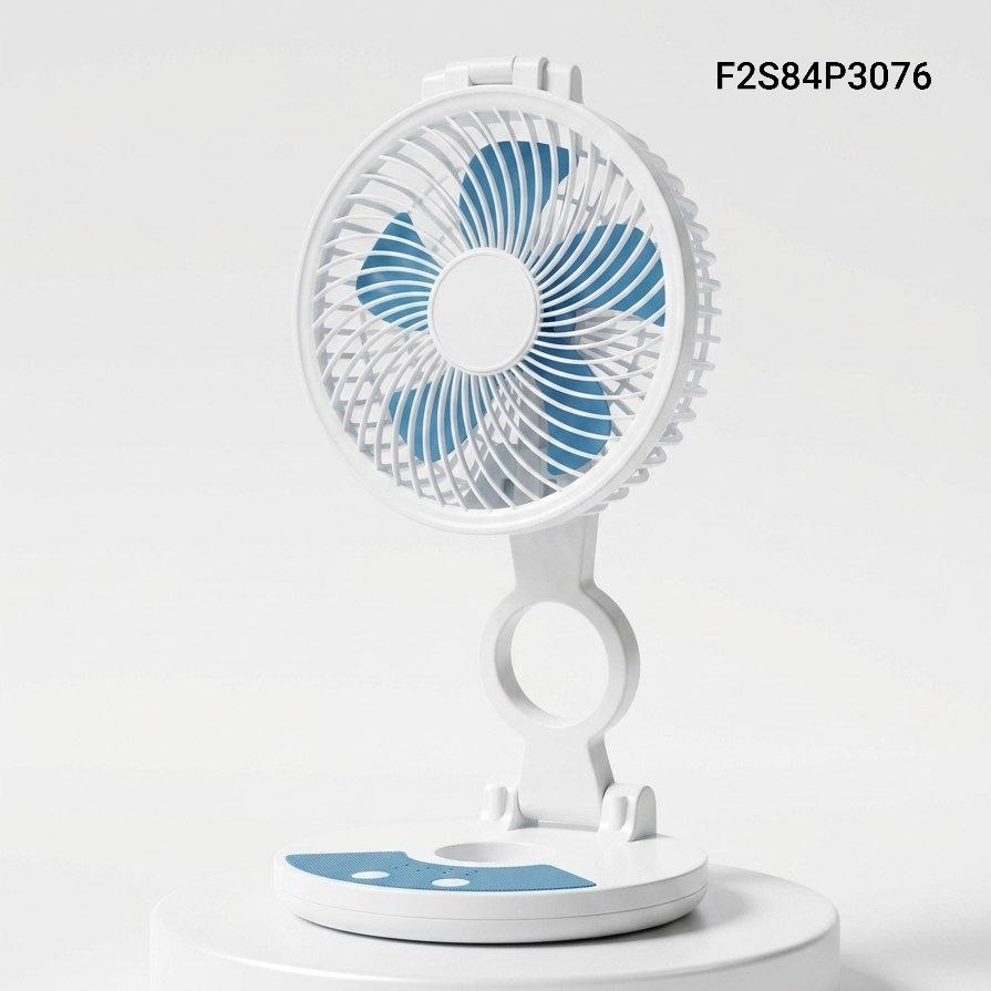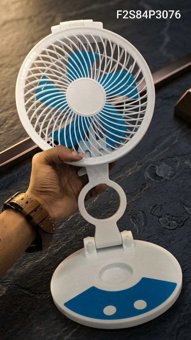 Portable, Rechargeable Folding Desktop Fan With An Integrated LED Light